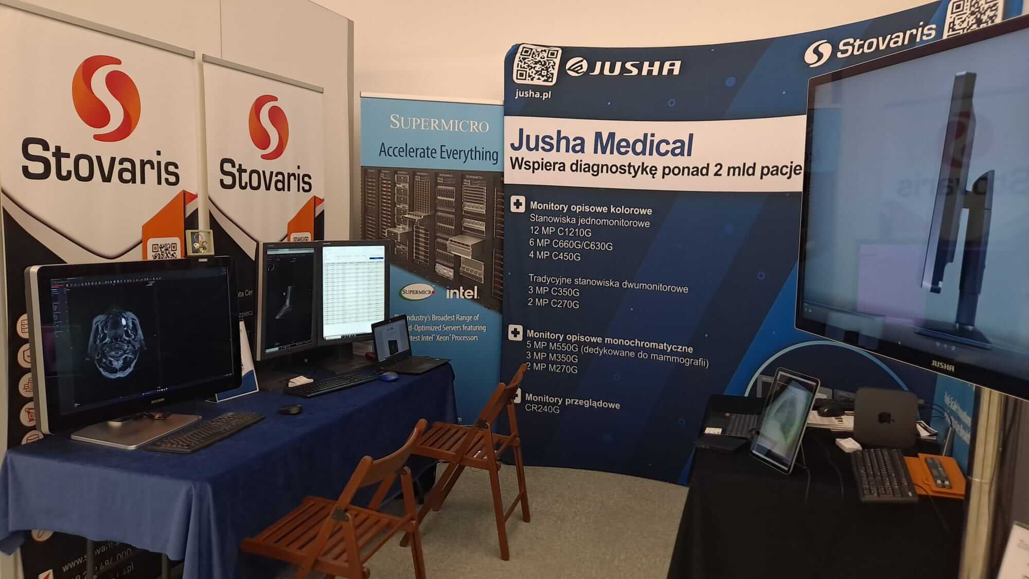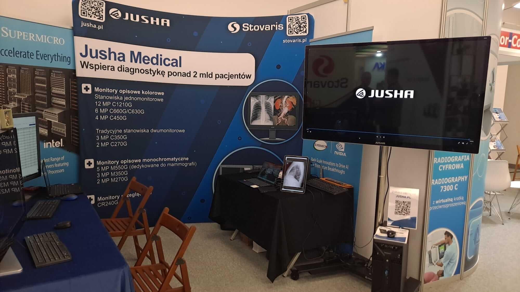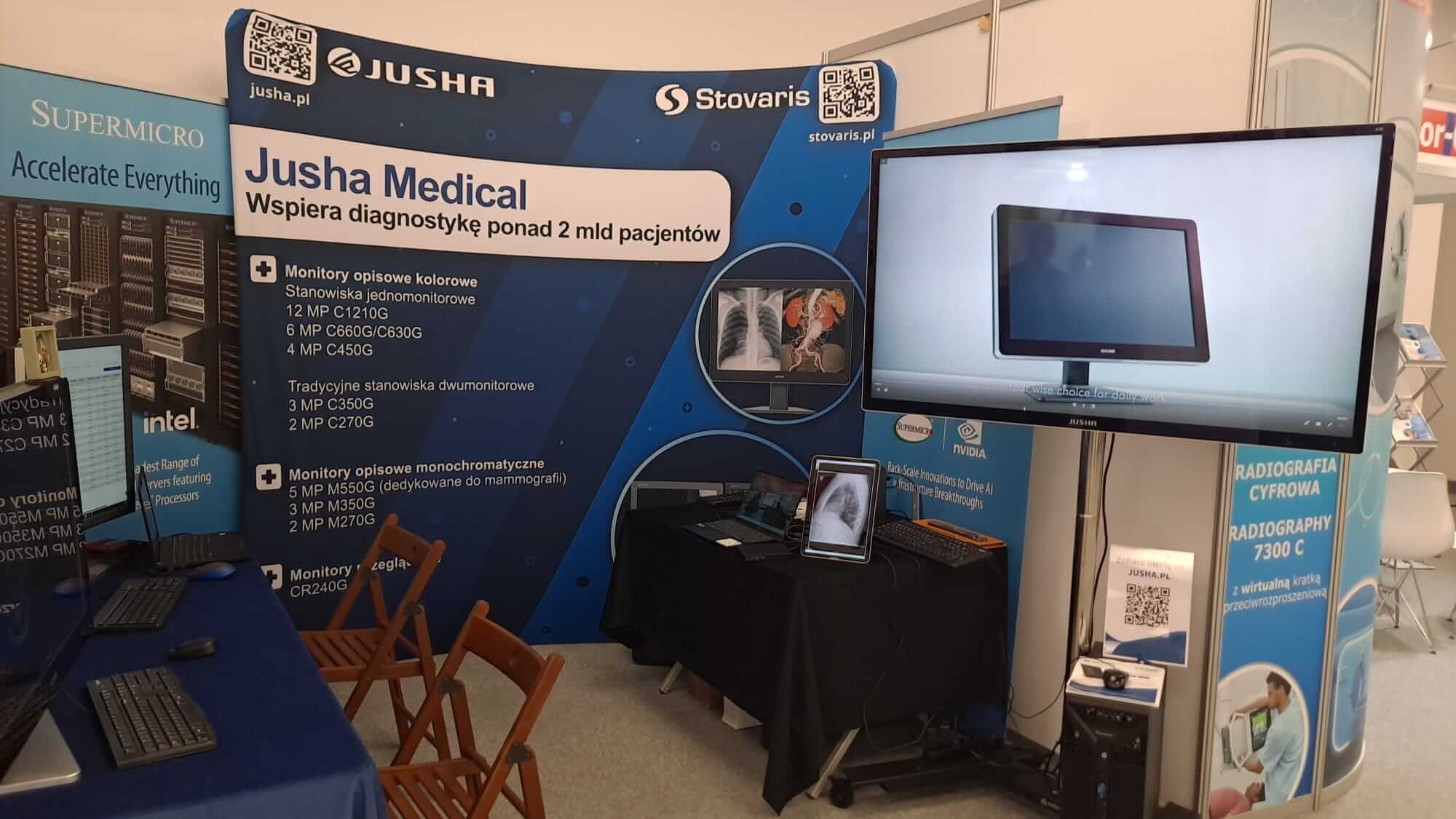 Na stoisku naszego partnera – firmy Stovaris, która jest autoryzowanym dystrybutorem produktów Jusha w Polsce – uczestnicy mogli zapoznać się z zaawansowanymi monitorami diagnostycznymi i klinicznymi. Szczególne zainteresowanie wzbudziły modele o wysokiej rozdzielczości, przeznaczone do diagnostyki obrazowej, wyposażone w technologie kalibracji zgodne z normą DICOM oraz funkcje automatycznego dostosowania jasności.